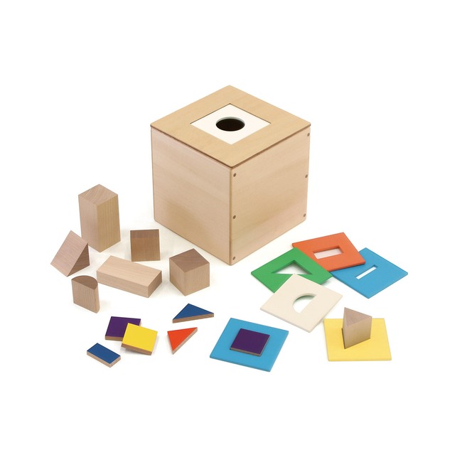 乳幼児は繰り返すことと比較することによってものごとを認識していきます。 穴の形に対応した積木をたくさん用意してあげることで、子どもが満足するまで集中して遊ぶようになります。 ※ラッピングはクリスマスラッピングとなります ご希望の場合、備考欄にラッピングとご記入ください 【内容】 プレイボックス180、フタ、穴落としプレート45×7枚(円・半円・正三角形・正方形・長方形1/2・直角二等辺三角形1/2・長方形1/6)  【サイズ】 外寸:180×180×187.5㎜ プレート穴:基尺45㎜  【材質】 箱:シナ プレ−ト・フタ:シナベニヤ  【塗装】 合成樹脂塗料 ※正三角形のプレートが変更となります 旧:からし色 新:黄・明清色